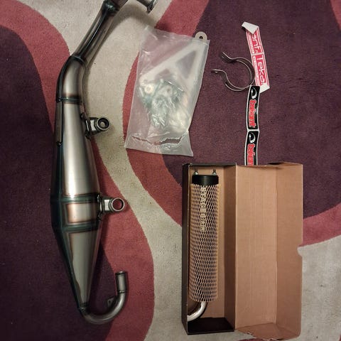 Gianeli Go tehoputki ollut kiinni Yamaha Jog skootterissa mutta sopii moneen yamahaskootteriin. Hyvässä kunnossa ei vuoda ei ruostetta hyvät maalit, ajettu noin 2kuukautta ovh hinta225€