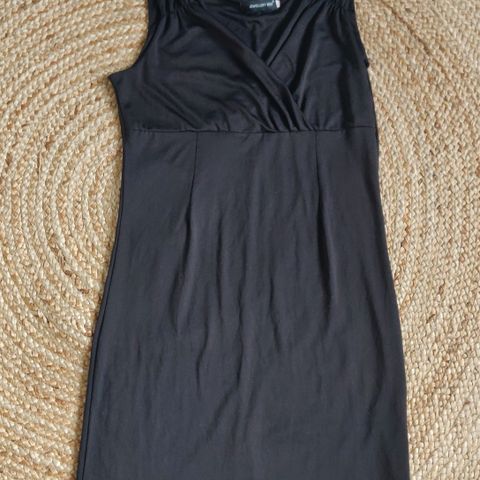 Oranssimusta raidallinen mekko. Koko on arvio, kangas jonkin verran joustavaa. Siistissä kunnossa, todella vähäisellä käytöllä ollut.