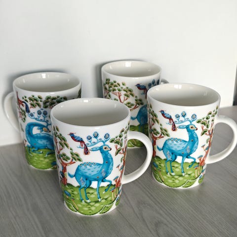 Myydään 5kpl vähällä käytöllä olleet Iittalan satumetsä mukit. Myynnissä myös 5kpl leipälautasia ja 4kpl kulhoja.