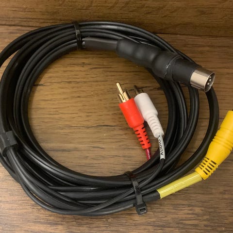 64 ja Vic-20 sopiva din-rca mallinen johto, luultavasti joku tän nikkaroinut itse, tuli mulle yhen koneen mukaan eikä ole tarvetta kerätä näitä, testasin molemmilla koneella ja kuva ihan ok, noin 2m pitkä. Molemmat yhteensä 8e, lähetys kirjeenä onnistuu eli pk 5,50e