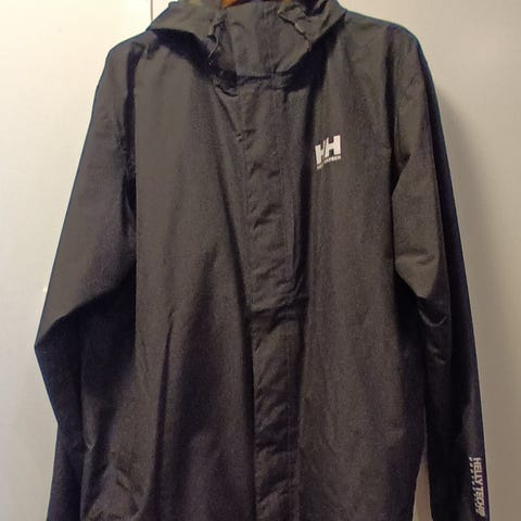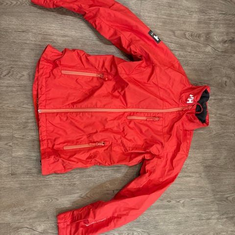 Käytetty Helly Hansen tuulitakki. Ehjä, mutta käytön jälkiä ja oikeassa helmassa maalitahroja.