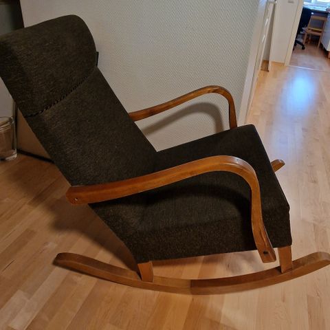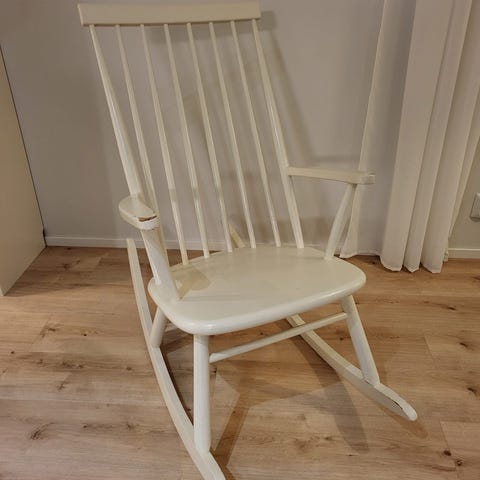 Myydään musta keinutuoli. Maali hiukan ajansaatossa kulunut ainakin käsinojista. Muuten hyväkuntoinen ja ehjä.