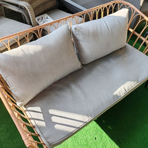 3-istuttava puutarhasohva divaanilla. Leveys 187 cm, korkeus 76 cm ja syvyys 50cm, divaanin kohdalla 160 cm. Divaanin puolta pystyy myös vaihtamaan. Väri harmaa. Materiaali polyrottinki. Ostettu 8/2024. Sohva ollut lasitetulla parvekkeella. Vain nouto.