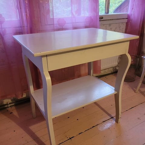 Maalattu jossain vaiheessa valkoiseksi. Koivun värinen alapuolelta.