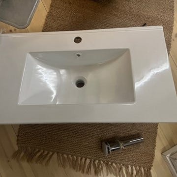 Menuet allas kylpyhuoneeseen, valkoinen, käyttämätön, paketissa. Mitat: 101 cm x 45 cm x 7,3 cm (takareuna) 6,3 cm (etureuna). Vain nouto.