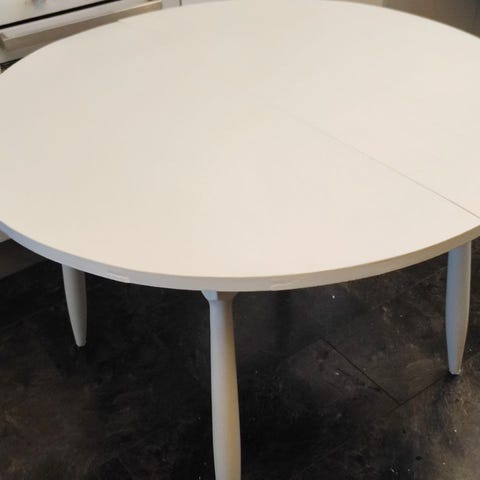 Pöytä on jatkettava, keskelle saa nostettua jatkopalan, jonka leveys on noin 30 cm.