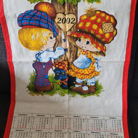 Myyntiin käyttämätön vuoden 2008 kalenteripyyhe.