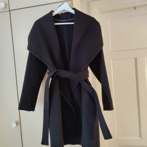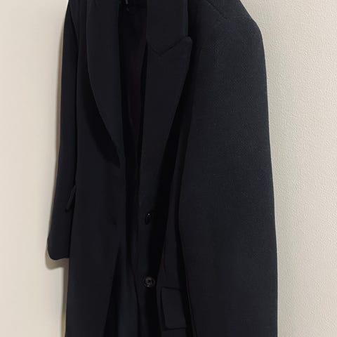 Myydään naisten musta Mangon villakangastakki. Takissa vetoketjulliset etutaskut sekä hienot yksityiskohdat hihoissa. Kainalo-kainalomitta 50cm. Pituus 84cm.