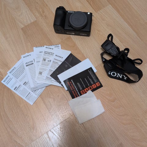 Sony A6700 -järjestelmäkamera. Kompakti ja kevyt runko, sopii hyvin valokuvaukseen ja videokuvaukseen.