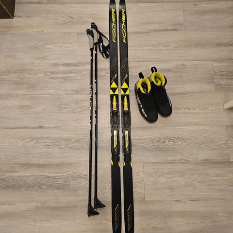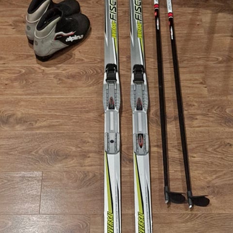 Hyväkuntoinen Fischer Sprint Crown suksipaketti 130cm.Tour step in NNN-siteillä. Pitopohja.