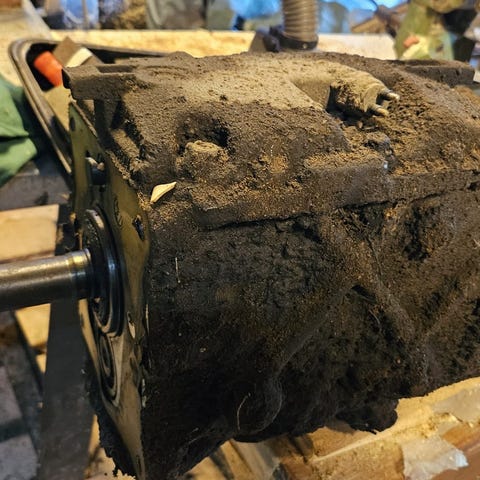 Pitkään seissyt Volvon M46 vaihdelaatikko mittarinvaijeri lähdöllä. Säilytetty kuivassa kylmässä tallissa. Ei tietoa toiminnasta.