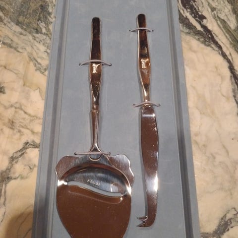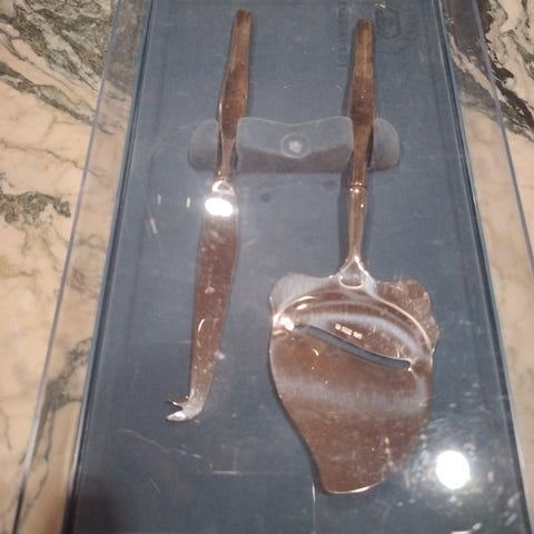 Wirkkalan suunnittelema hopeinen juustohöylä ilman kaiverruksia.