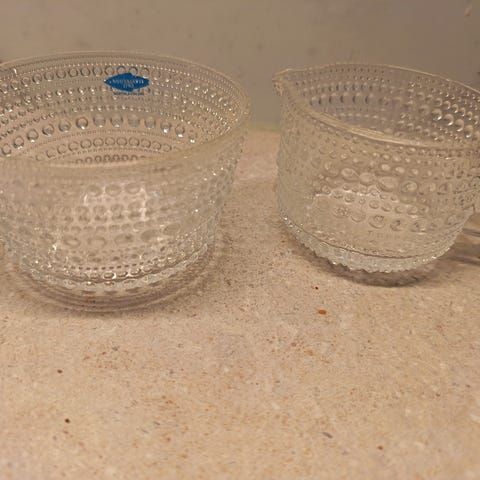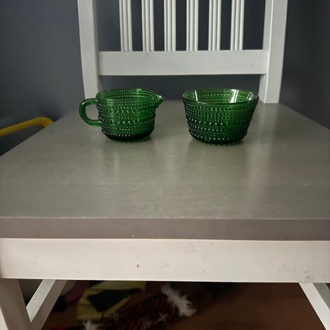 Oiva Toikan suunnittelema vihreä Arabia(Iittala) Kastehelmi -sokerikko ja -kermakko