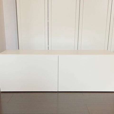 Hyväkuntoinen kaappi. Käytönjälkeä löytyy päädyistä, ovissa on myös pieniä jälkiä. Ovien jäljet ei hirveästi pomppaa silmiin. Ovet vaihdettu vuoden sisään uusiin, vaalea puuosa siistissä kunnossa. Päällä lasilevy, en löytäny naarmuja.
