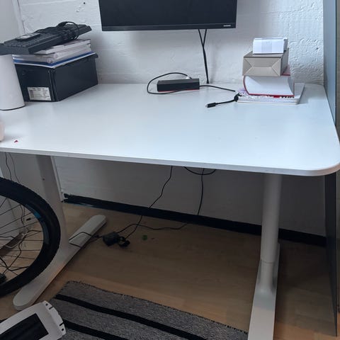 Hyväkuntoinen työpöytä, jalat säädettävissä manuaalisesti.