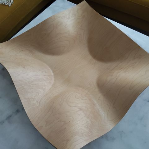 Showroom Tuisku -tarjoiluvati valmistettu koivuvanerista. Design Petri Vainio. Tarjoiluvati on muotoiltu aaltoilevaksi ja soveltuu esimerkiksi hedelmien tai pienten esineiden säilytykseen. Noin 32cmx32cm, 46x46cm kulma-kulma.