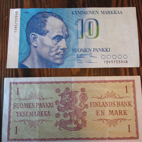 100 markan seteli vuodelta 1976 ja 100 markan kolikko vuodelta 1957 halvalla pakettina.