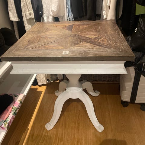Myydään Riviera Maison 150x150 pöytä + 10 valkoista Riviera Maisonin pellavahuppuilla olevaa tuolia. Pöydän päälle teetetty erikseen lasitusliikkeessä lasi.Myydään muuton vuoksi