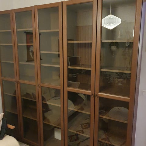 Myynnissä 2kpl Billy hyllyä lasisilla vitriiniovilla (80cm leveys) ja yksi Billy hylly (40cm leveys).