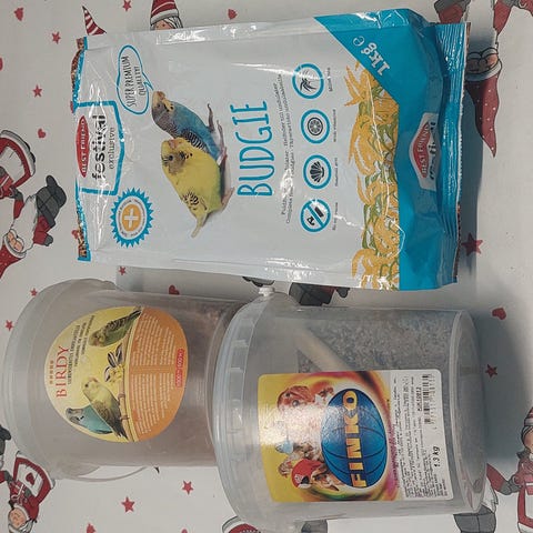 Kaksi avaamatonta ja yksi avattu paketti. Mineraalikiviä pikkulinnuille. Nouto varissuolta.