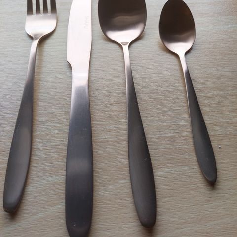 Lusikoita ja kakkuhaarukoita kuvan mukainen setti. Stainless steel.