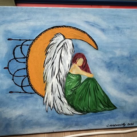 Öljyvärimaalaus, koko kehyksineen 45*62 cm. Maalauksessa ei signeerausta. Takapuolella kaksi merkintää. S.R ja Alanen. Ks. Kuvat