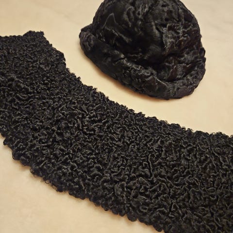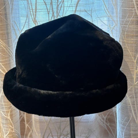 Turbaani upeaa kullanruskeaa puuvillasamettia. Modistin valmistama, muotoonsa ommeltu hattu, arviolta 60- tai 70-luvulta. Melko pienelle päälle, koko 54-55 (mittaa päänympärys vinottain otsalta niskaan).