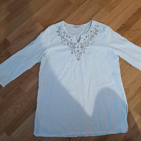 Sininen kauluspaita, 100 % puuvillaa. Kokomerkintä XL, kainalo-kainalo n. 53 cm, olka-helma n. 70 cm. Kangas joustaa (on trikoota)