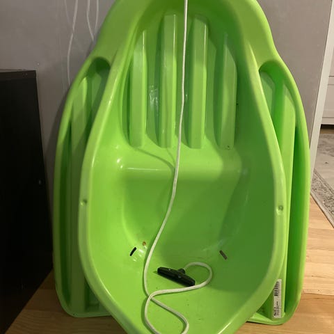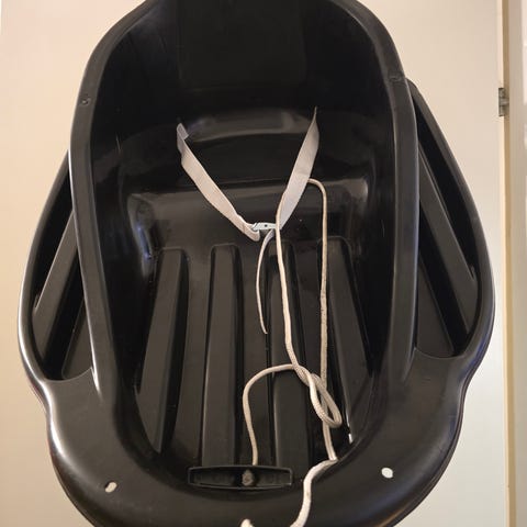 Pulkkaan on liimattu heijastintarrat, jotka parantavat näkyvyyttä ja turvallisuutta pimeällä liikuttaessa.