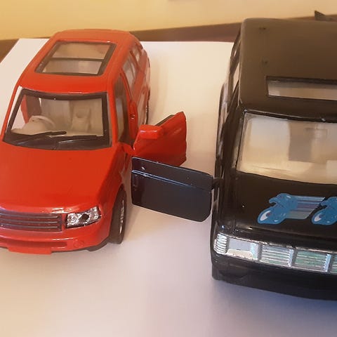 Metalliset leluautot 1:43. 5 kpl erivärisiä. Pakkaus on avaamaton ja autot ovat uusia.
