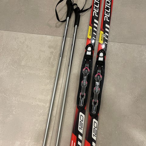 Peltonen Sonic 120cm lasten sukset. Pitopohjat ja Rottefellan NNN-siteet.