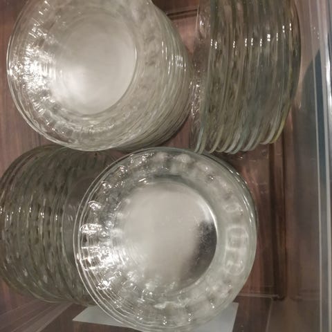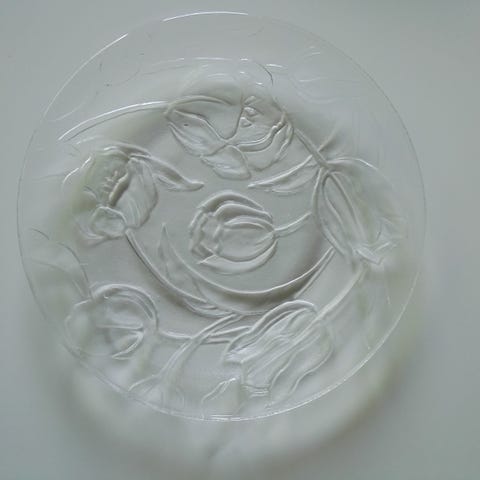 Ehjiä, siistejä kukkakuviollisia lasilautasia 6kpl. Merkistä/valmistajasta ei tietoa.