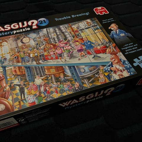 Wasgij Mystery Puzzle -palapelit, 1000 palaa. Palapelit sisältävät erilaisia teemoja kuten retkeily, kaupunki ja mysteeri.