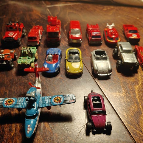 Paloauton tikkaissa halkeama ja keltaisesta autosta puuttuu ehkä koukku. Muuten hyväkuntoiset. Nouto Amurista tai postitus. Yhteensä 8€, erikseen 5€/kpl.