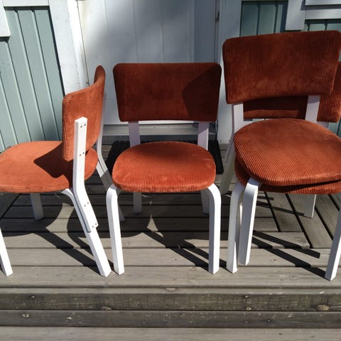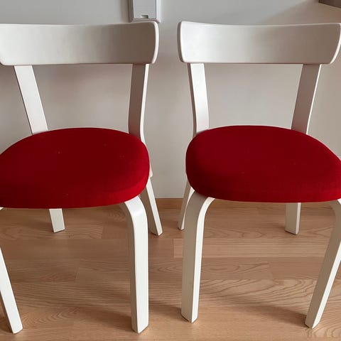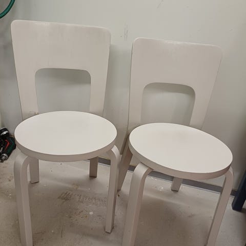 Myydään artek 66 tuolit, koivu ja valkoinen laminaatti. Koivun kunto kuin uusi, valkoisessa laminaatissa pieni jälki (katso kuvat)