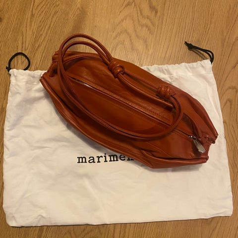 Myydään Marimekon Karla -nahkalaukku isommassa koossa. Värinä musta. Nahka pehmennyt uudesta, mutta muutoin laukku oikein siisti.