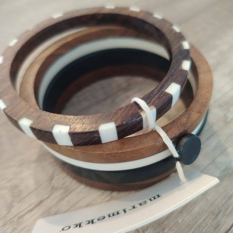 Myydän Marimekon rannekoru 2 kpl. Kuin uusi. Väri on luonnonvalkoinen ja viinipunainen.