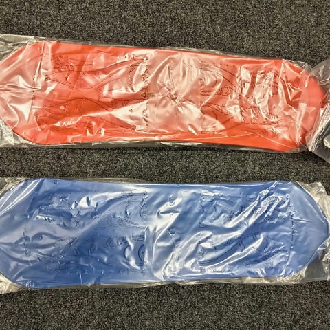 Maui lumilauta, jossa värikäs kuviointi. Toimii paremmin umpihangessa kuin rinteessä. Ei siteitä