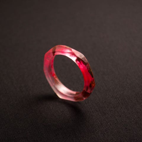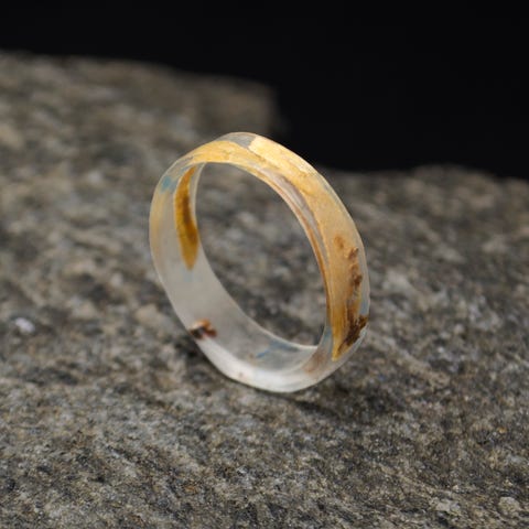 Myyntiin uniikki, kotimaista käsityötä oleva vaahtera-hartsi sormus.