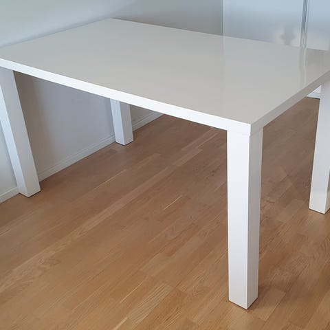 Valkoinen ruokapöytä. Pinnassa pieniä käytön jälkiä, mutta varsin siisti ja ehjä. Vain nouto!