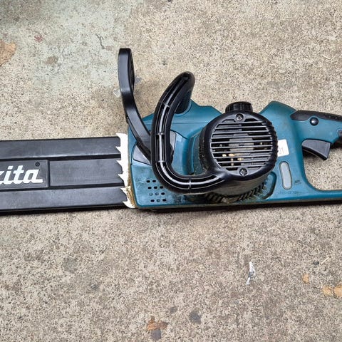 Joutilaana makitan moottorisaha. Täysin toimiva peli. 45cc moottorilla, 14" laippa.