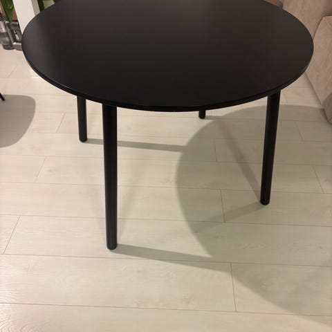 Myynnissä Jyskin valkoinen pyöreä ruokapöytä, halkaisijaltaan 100cm. Pöydän kansi lähes virheetön, vain yksi hyvin pieni jälki (katso kuva). Vain nouto.