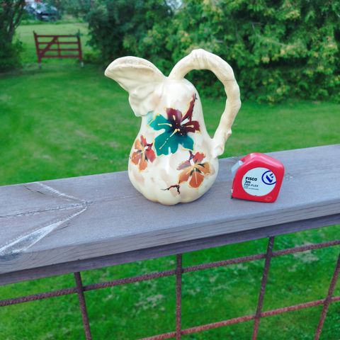 Valkoinen kannu kukilla. Korkeus 21cm. Farval/Portugal.
