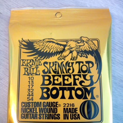 2 avaamatonta settiä, yksi setti avattu, mutta käyttämätön. Kurkattu sisälle ja huomattu, ettei ollutkaan oikeanlaiset meidän tyttären kitaraan.