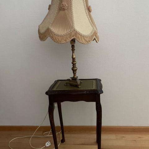 Muuta: Tämä harvinainen valaisin on suorastaan majesteettisen tunnelmallinen, kuvat puhukoon puolestaan… =D Valaisimen upea ”hopeakuorrutteinen” jalka yhdistettynä tyylikkääseen varjostimeen luo todella elegantin ilmapiirin. Valaisin on kunnossa myös sähköistyksen osalta, mutta lamppua tähän ei tule mukaan ja käypäinen on ns. vanhalla kannalla. Tämä on jokaisen itseään arvostavan leidin helmikohde, jollaisia meiltäkään on harvemmin saatavilla!