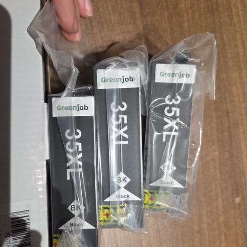 Tarvikemusteita Epsonin tulostimiin, jotka käyttävät 35XL mustekasetteja. Huom nämä eivät ole Epsonin valmistamia alkuperäismusteita, vaan muun valmistajan tarvikemusteita. Paketista on pari kasettia käytetty ja jäljellä on 4 x musta, 2 x sininen, 1 x punainen ja 1 x keltainen.