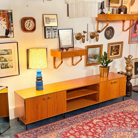 Upea pitkä ja matala vintage tiikki senkki 1960-luvulta.