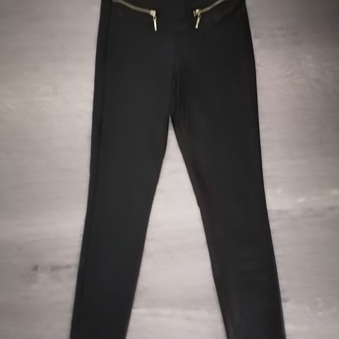 Siistissä käytetyssä kunnossa olevat housut. Vyötäröllä nappi, hakaset ja vetoketju. Ulkopuolella solmittava vyö.