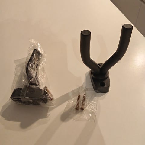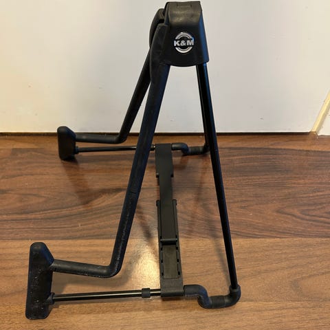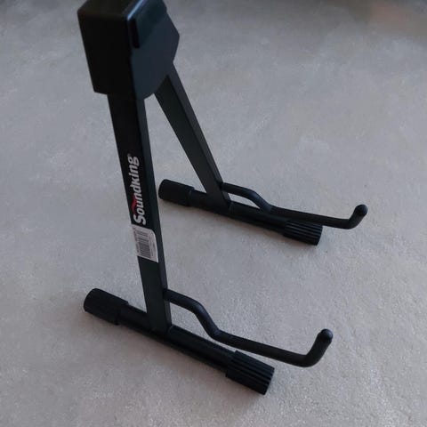 Musta kitarateline, suunniteltu tukemaan kitaraa turvallisesti. Sopii erilaisten kitara- ja kitaratarvikkeiden säilytykseen ja esillepanoon.