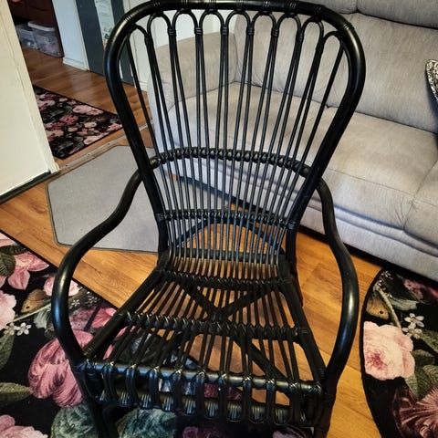 Hyväkuntoinen Ikean Agen rottinkituoli. Tarkat mitat 4. kuvassa. Savuton ja eläimetön talous. Edelleen myynnissä Ikeassa, ovh 79,99€.